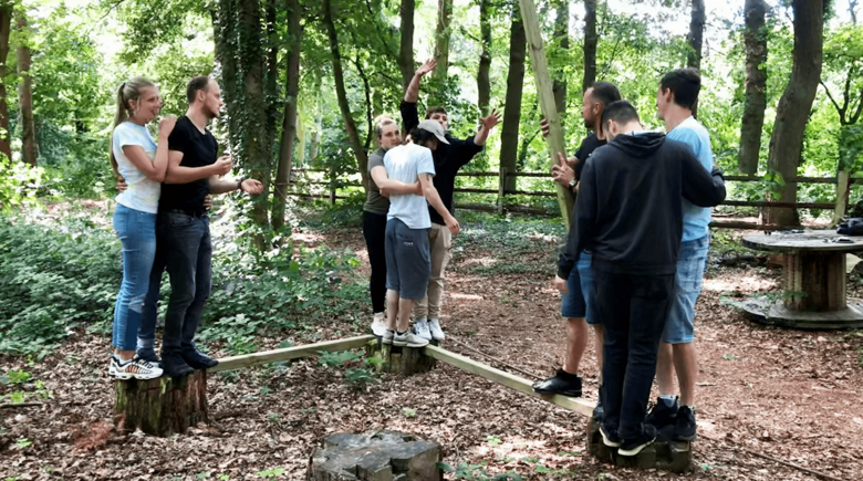 Once there, we found a lot to discover. Among other things, an adjacent forest filled with various facilities for teambuilding exercises. The rooms were settled and shortly afterwards the seminar of the Wicke Akademie began. Our seminar leader, Mr Linke, eased the tense atmosphere in just a few minutes, as some trainees hardly knew each other due to the separate departments and buildings. Monday was filled with varied team games in the forest. The first exercise, "seesaw", broke the ice and we all literally got closer to each other. The special thing about these exercises was the structure. Each exercise had a planning phase in which everyone could have their say and express ideas. Then the "execution phase" began, in which the exercise was carried out with a time limit, and finally there was always a discussion or feedback round about positive, but also negative things. More exercises followed, which often went very well, but also some in which we exceeded the time limit, for example. But we always continued until all trainees reached the goal of the exercise. There were also exercises that were carried out with a blindfold, which demanded extreme trust in the respective colleague, as we could only reach the goal together.
