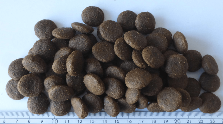 We programmed the maximum speed setting of 18000 rpm and used a batch of 200 g of the dog food. The sample was fed slowly and was ground within 1:40 minutes. The grinding sound was typical during the grinding process.