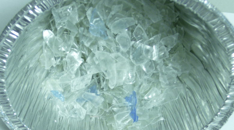 The waste manager is now has the task of processing these materials. For this purpose, the plastic bottles are shredded. This process creates pieces (so called flecks) of an average size of 3 x 12 mm and also naturally a very fine dust. With a suitable cleaning process, the shredded product is washed absolutely clean. The separation from other plastics, like for example PP (polypropylene) or PE (polyethylene) from which mostly the screw caps are made, is accomplished with the sink and float method with a density separation. After the drying, the paper labels may also be removed with a blowing off process. The flecks are sold in this state by the recycling firms. For further processing, the fine share must be extruded and the resulting granulate is then also sold.