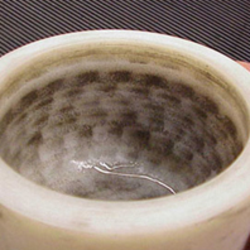 This upper, slightly stained grinding path is also clearly recognizable in the sintered corundum grinding bowl. The upper grinding path is smooth and round in every grinding bowl, whereas the grinding paths below (depending on the material of the grinding bowls) may look differently. Depending on the grinding ball size, the paths are created at different distances to one another, for example with 10 mm grinding balls, 7-8 grinding paths are attained on average, with 20 mm grinding balls 3-4 grinding paths and with 30 mm grinding balls 2 paths.