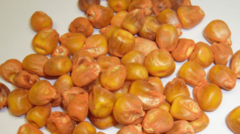 Maize kernels, dressed, prepared as seeds, are subject to testing in regards to possible contents of genetically modified organisms (GMO). Genetically modified maize was developed based on economic reasons: