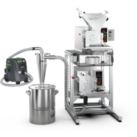 The extra powerful FRITSCH Cutting Mill Combination 19 large/PULVERISETTE 19 consists of the Universal Cutting Mill PULVERISETTE 19 large and the Universal Cutting Mill PULVERISETTE 19. The entire sample with a particle size of up to 30 mm is pre-crushed by the PULVERISETTE 19 large, than falls automatically through a funnel into a sample divider with a variable division ratio up to 1:13. This allows the throughput of large sample quantities up to several litres. The smaller sample fraction is automatically ground with the PULVERISETTE 19 down to a final fineness of 0.5 mm – 1 mm. The powerful air vortex within the FRITSCH Cyclone separator draws the ground sample into the attached collecting vessel.