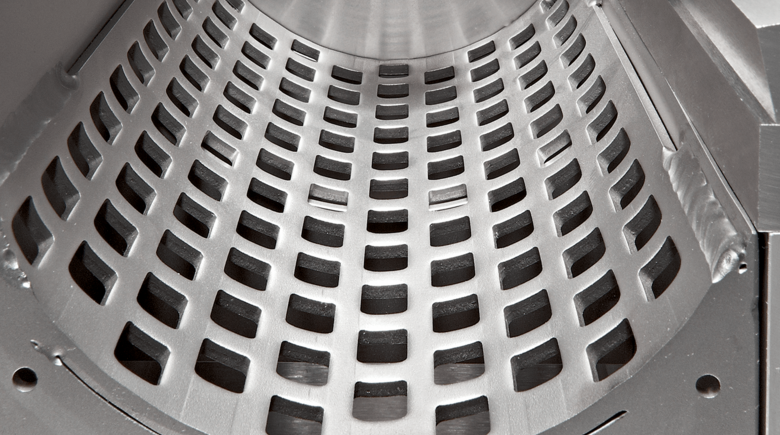 FRITSCH–Plus : Le rotor des broyeurs à couteaux FRITSCH est démontable facilement, sans outil et se tourne à la main pour un nettoyage intermédiaire rapide, même lorsque le broyeur est ouvert.