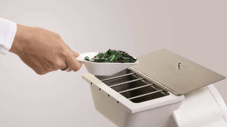 Le boîtier massif du broyeur FRITSCH PULVERISETTE 13 classic line est en fonte grise recyclable.