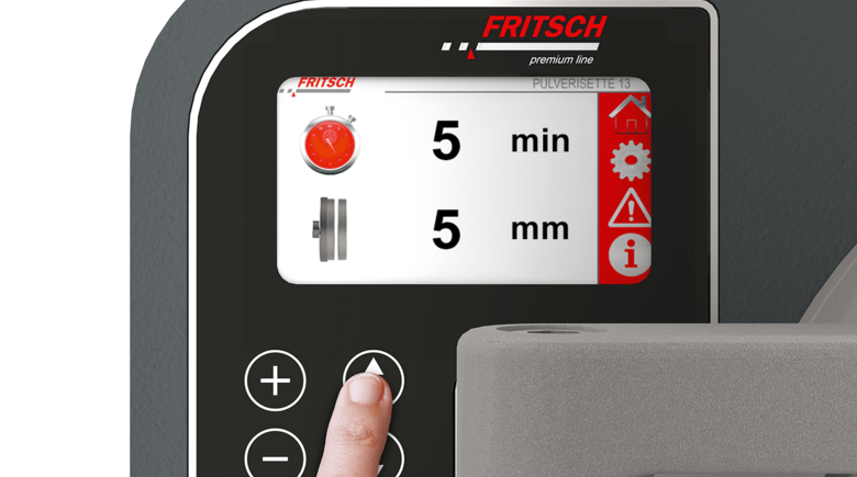 premium lineLa variante premium du broyeur à disques FRITSCH pour un broyage fin et efficace de matériaux cassants, durs ou de dureté moyenne : encore plus sûr grâce au verrouillage automatique du récipient collecteur et de la chambre de broyage, encore plus simple à utiliser grâce au réglage motorisé de l'écartement des disques avec affichage numérique et à la visualisation de tous les paramètres sur l'écran.