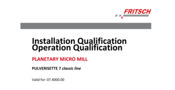 IQ/OQ documentation (questionnaire format - implementation by customer) for the independent utilization for the support of instrument qualification in the quality management system for the Planetary Micro Mill PULVERISETTE 7 classic line.