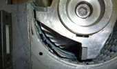 | Pictures: | Opened grinding chamber, rotor removed. Only very small amount is left (mainly in front of the sieve cassette after opening of the lid). |