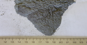 | After splitting the remaining board into half, the complete sample has been ground. Only minimal sample use to remain in the grinding chamber. |