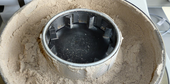In our first trial, we wanted to testify a direct grindability of sample with sieve rings with small trapezoidal perforated openings.