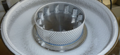 | Pictures: | Opened grinding chamber: a small amount of residue is sticking to the rotors ribs and the outside of the sieve ring. Because no openings are blocked with sample, a grinding of higher amounts is plausible. Also sample use to stick lightly to the collecting pan (by electrostatic charge). |