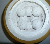 | Sample use to stick strongly to bowl and grinding balls after the first minute of dry grinding. A longer dry grinding is not recommended. |