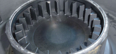 | Pictures: | Opened grinding chamber after 150 g of sample have been fed. Airflow is still constant; no openings of the used sieve ring got blocked with sample. A grinding of higher amounts of sample is still possible (like result 2). |