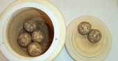 | Pictures: | After 2 minutes, sample only became compressed and flatten out. A longer dry grinding is not recommended when sample already starts sticking. |