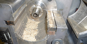 We fed the funnel to the maximum and had to use the sample pusher to support feeding on a regular basis. After 2:15 minutes, it has shown that some pieces might lye in front of the rotor knives without getting grabbed properly.