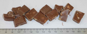 Original sample of milk chocolate with a lower melting point. Pieces are melting rapidly, even lower temperatures of the hand are enough for comminution. |