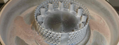Opened grinding after comminution of 25 grams of embrittled milk chocolate sample. Impact force on the rotor ribs hasn’t made embrittled samples melting. But after hitting the sieve ring, a few pieces started melting on its surface. |