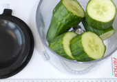 | Pictures: | To feed 400 grams of sample, the cucumber needed to be precut < 70 mm. |