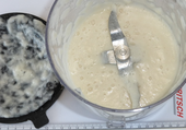 | Prepared sample amount (260 gram) inside the 1,4 liter Tritan grinding vessel. |