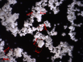 | Dry ground sample after one minute still contains about 80 % of particles > 63 µm, but already starts sticking. |
