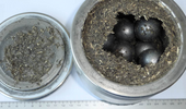 | Pictures: | Even 1 mm sieve ring does not clog with sunflower seed sample. By using liquid nitrogen, even higher amounts of sample can be ground this way. |