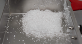We used 100 g of the pre-ground textile as a batch. The sample was fed piecewise and was ground within 2 minutes. The grinding sound was typical. By using our high-performance cyclone with sample exhaust, the grinding chamber and sample were better cooled and transferred to a collecting vessel.