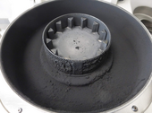 | Pictures: | Opened grinding chamber after 2:40 minutes – fine dust was attached to all available surfaces. |