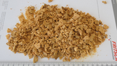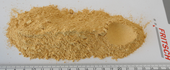 | Output which passed the 0,35 mm sieve perforations. A spoon was moved above the heap and got pressed into the heap to demonstrate the level of fineness. |