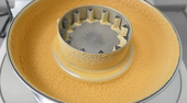With our second trial, we wanted to demonstrate grinding with our Variable Speed Rotor Mill PULVERISETTE 14 classic line. The mill was equipped with a sieve ring with 0,35 mm trapezoidal perforations. Also, an impact rotor with 12 ribs was used. The sample was very brittle; eventually a feeding of the sample could be performed without a manual pre-crushing.