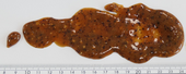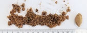 | Sieved out fraction > 1 mm after 30 seconds of grinding. An intact plum kernel was placed on the right side. |