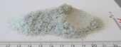 | Pictures: | Example of the output which passed a sieve shell set with 0,2 mm perforations. A spoon was pressed into the heap to demonstrate the fineness (right side). |