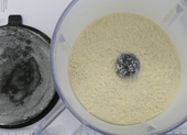 At this time, no smearing of fine ground sample was observed yet; a longer dry grinding should still be possible if required. The grinding equipment was cleaned rapidly by flushing with fresh water.