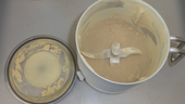 | Pictures: | Opened bowl after only five seconds of grinding. The fine sample dust stuck electrostatically to all available surfaces. |