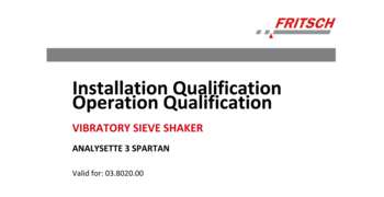 IQ/OQ documentation (questionnaire format - implementation by customer) for the independent utilization for the support of instrument qualification in the quality management system for the Vibratory Sieve Shaker ANALYSETTE 3 SPARTAN.
