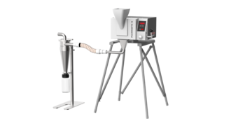 To operate the FRITSCH Cyclones you need an exhaust system. The strong airflow ensures simple feeding, increases throughput, and reduces the thermal load of the samples. The high performance and small volume Cyclone separator can be combined with Universal Cutting Mills PULVERISETTE 19, the Rotor Mill P-14 and the Variable Speed Rotor Mill PULVERISETTE 14 classic line. The small volume cyclone can also be combined with the Rotor Mill P-14 premium line and Variable Speed Rotor Mill PULVERISETTE 14 classic line even for passive utilisation – without sample exhaust.